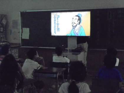 11日(金)の5時間目、2年1組は教科「日本語」の時間でした。今回は、論語を読みました。最初に、孔子についての映像を見ました。次に、白文からわかる漢字を抜き出し、意味を考えました。