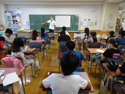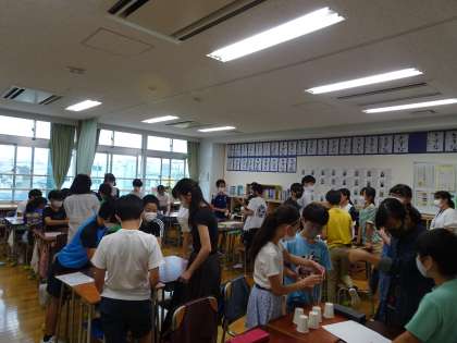 12日(土)は4時間授業でした。各学級の様子を紹介します。上から、6年1組、5年1組です。6年生は、紙コップタワーに挑戦していました。
