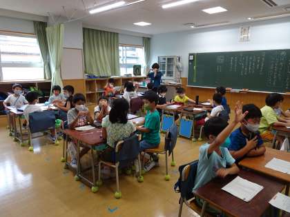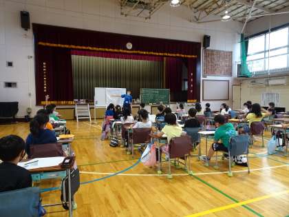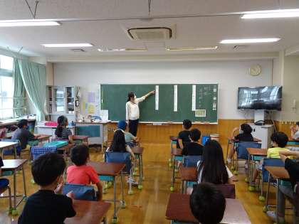 写真は3年1組、2年1組、2年2組の様子です。3年1組の教室はこの日限定で、体育館としました。人数が一番多い学級のため、3密をさける目的で実施しました。前日に教職員で子どもたちの机といすを運び入れました。子どもたちは場所が変わっても落ち着いて学習に取り組んでいました。4時間目終了後、教職員の他に保護者の皆様にも机といすを教室に戻すお手伝いをしていただきました。ご協力ありがとうございました。