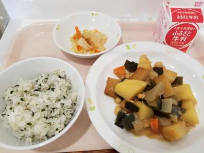 鶏肉、タケノコ、さつまあげ、大豆に昆布まで。こっくり、色