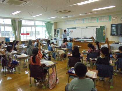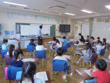 15日(火)の3時間目、1年2組は教科「日本語」の時間でした。今回は、「雨にもまけず」の詩を読みました。初めて読んだ子どもたちですが、「いいな」と思った言葉や文を次々に紹介していました。
