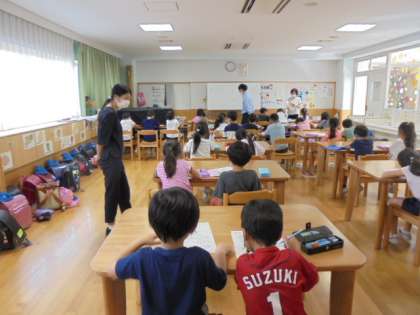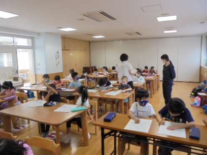 15日(火)の6時間目、1年生の希望者による放課後学習が始まりました。講師の先生を中心に、担任の先生も参加します。初回は、10までの数について復習をしました。