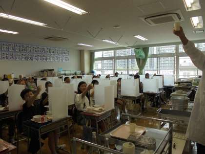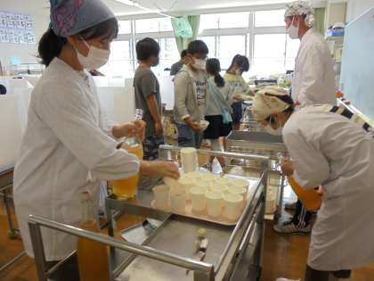 24日(木)の給食は、創立90周年をお祝いしてお赤飯が出ました。さらに嬉しいことに、5年生は群馬県川場村からリンゴジュースのプレゼントをいただきました。1.8Lのビンで届き、先生たちが紙コップに注ぎました。川場村の方に紙コップを掲げて、「川場村の皆さん、ありがとう。」とお礼を言いました。ストレートジュースのおいしさを、満喫しました。