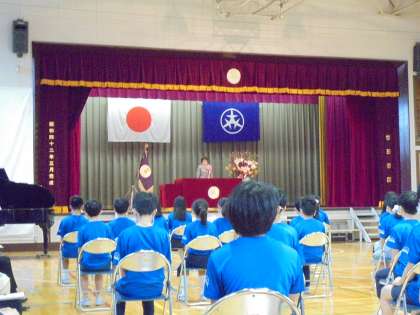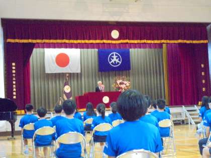 3日(土)、午前10時30分より記念式典を行いました。49名の来賓の皆様にお越しいただきました。写真は上から、正門の立て看板、校長式辞、来賓祝辞の様子です。来賓祝辞は、周年実行委員長様よりいただきました。