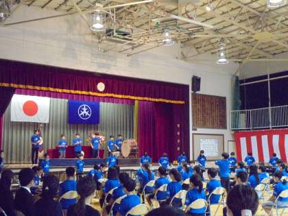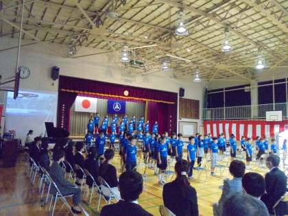 創立90周年記念式典では、歴代の校長先生方のご臨席もいただきました。その中のお一人、今から30年前の創立60周年記念式典のときの校長先生が子どもたちにお話をしてくださいました。その後、児童発表「100年につなぐ」を披露しました。