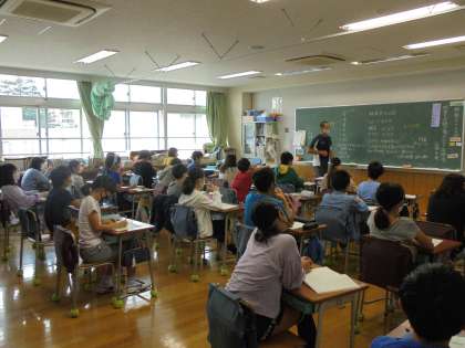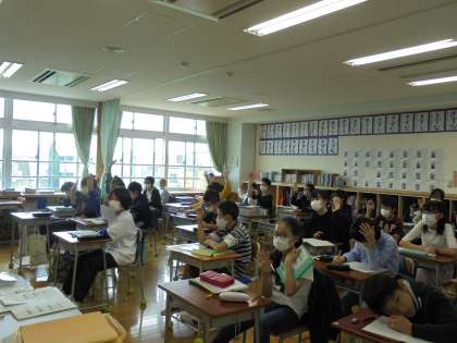 毎週月曜日の朝は、放送朝会を行っています。12日(月)の校長先生のお話は、100mを10秒24で走った男子陸上選手のことでした。「地面をしっかり蹴って走ること」を走りのポイントとして学びました。