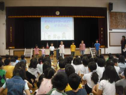 校長からの話、各学年代表児童からの話、養護教諭からの話、水泳担当教員からの注意がありました。代表児童は、とても上手に発表できました。