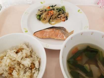 ごはんです。香ばしい豆とのりの香りは食欲をそそり