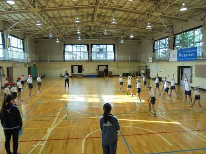 22日(木)、応援団の練習の様子です。あいさつのあと、組ごとに練習を開始しました。ラスト5分になったとき、これまでの練習の成果を互いに見合いました。赤組も白組も徐々にまとまってきています。