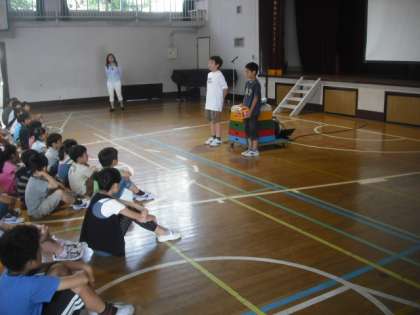 児童の運営委員から、被災地の皆さんにベルマークを送ることの計画が発表されました。ご家庭でもご協力を宜しくお願いいたします。