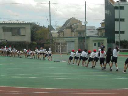 11月2日(月)の5時間目、5年生と6年生は合同で体育を行いました。体力テストに向けて、改めて50m走の記録をとりました。その後、スポーツフェスタで行った「綱引き」を5年生対6年生で行いました。1回だけの対戦です。両者とも力が入りましたが、6年生が勝ちました。