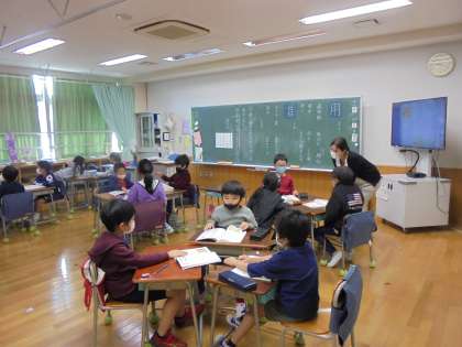 4日(水)の2時間目、2年1組は国語の時間でした。新出漢字「用」と「首」の練習をしてから、「お手紙」の学習に入りました。3人でグループを作り、音読の担当を決めました。どのように読んだらいいかも一緒に考えました。