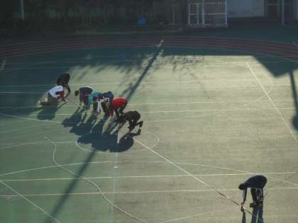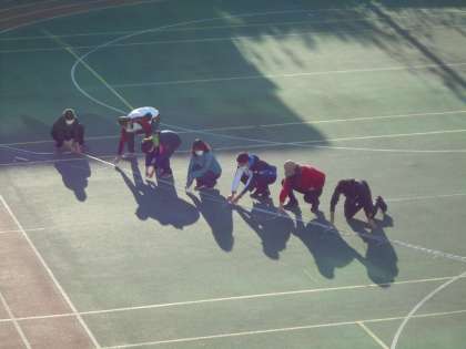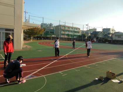 5日(木)の朝、先生たちは体力テストの準備を行いました。いつもより早めに出勤して、校庭に「ソフトボール投げ」のためのライン引きをしました。曲線をみんなで同時に引く姿から、先生たちの団結力が伝わりました。