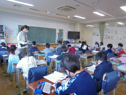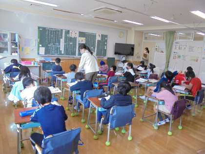 9日(月)の2時間目、2年1組は道徳の時間でした。「いいところ みいつけた」の話を読んで、登場人物「りえ」の気持ちを考えました。今回は、少人数算数の先生による授業でしたが、子どもたちは自分の考えをすすんで発表していました。