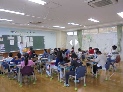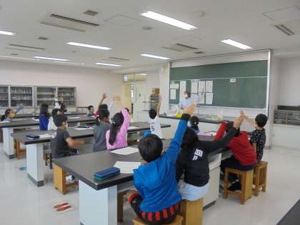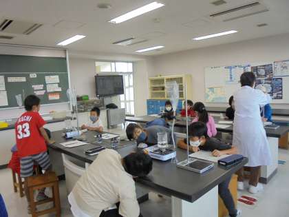 9日(月)の3・4時間目、4年2組は理科の時間でした。最初に教室で実験の予想を立てました。その後、理科室に移動して、3人グループで実験を始めました。水を温めて出てきたあわの正体を突き止めました。