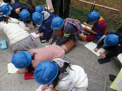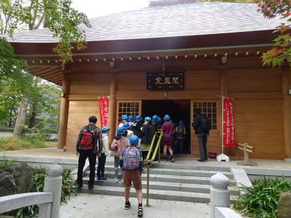 東京ドーム2つ半も入る敷地に、貴重な建物や、樹齢200年のイチョウの木、閻魔大王の像、9体の仏像など、しおりに一生懸命メモをしている子どもたちに感心しました。