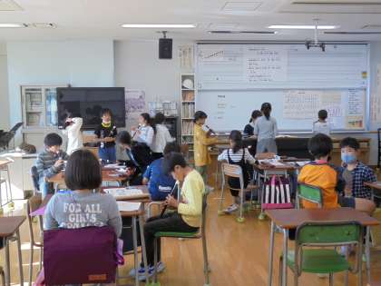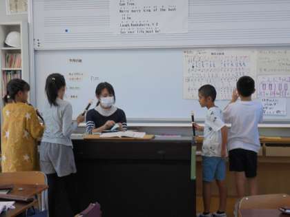 13日(金)の4時間目、4年1組は音楽の時間でした。今月の歌を歌ってから、リコーダーの練習をしました。挑戦している曲名は、「陽気な船長」です。2人組で練習をしてから先生のところで演奏し、シールをもらいました。