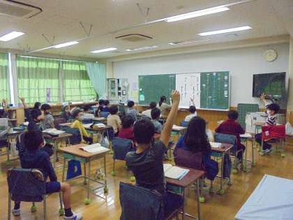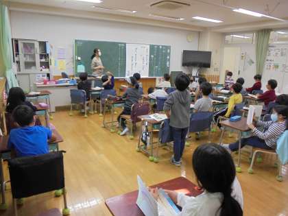 19日(木)の5時間目、2年1組は教科「日本語」の時間でした。今回は、山上憶良と防人の歌の短歌を読みました。何回も声に出して読んだ後、短歌に込められた作者の思いを考えて発表しました。