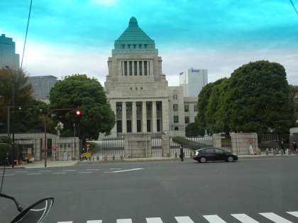 首都高速道路がとても空いていて、なんと20分で、霞が関に着いてしまいました。日の出桟橋で水上バスに乗るまであと1時間もあります。バスの運転手さんが、官庁街を巡ってくださいました。皇居、桜田門、二重橋、国会議事堂、旧法務省、警視庁等々バスの中から見学することができました。