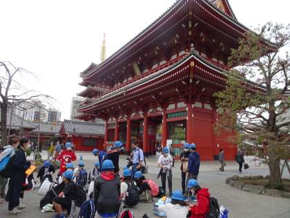 浅草の観光名物もたくさん調べている人もいました。最後まで、残金が0円になるように計算している人もいます。お店の方も、相談に乗ってくださいました。楽しい買い物の風景でした。満足した様子の6年生です。