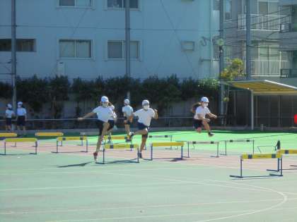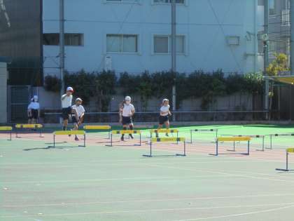 21日(土)の3時間目、5年1組は体育の時間でした。校庭で「ハードル走」に取り組みました。踏み切る足がいつも同じになるように、歩幅を考えたコース選びをしました。「最後で合わなくなった。」「リズムがつかめてきた。」など、子どもたちは手応えを感じていました。