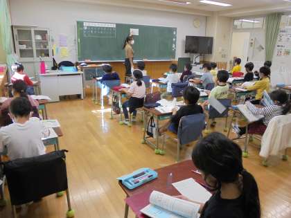26日(木)より2年1組の担任がかわりましたが。子どもたちは落ち着いて生活できました。5時間目は、算数の時間でした。かけ算の学習で「問題作り」に取り組みました。例題を一緒に考えてから、オリジナルの問題作りを始めました。