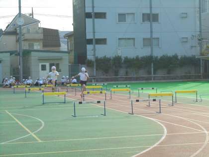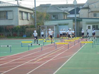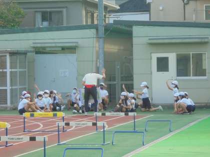 27日(金)の1時間目、5年1組は体育の時間でした。「ハードル走」に取り組んでいます。自分の歩数に合わせたコースを選び、練習を重ねています。担任の先生の「うまくいったね。」「その調子!」「惜しかった、あとちょっとだね。」の声に、子どもたちも笑顔でうなずいていました。