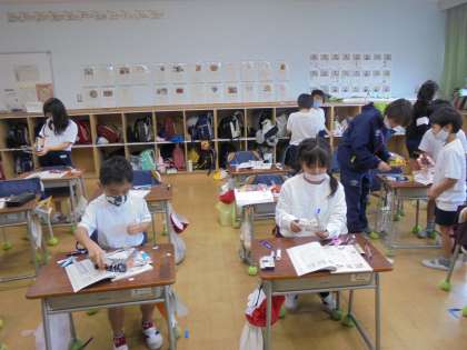 27日(金)の4時間目、2年生は2クラスとも国語の時間でした。説明文「馬のおもちゃの作り方」の読み取りをしています。今回は、説明の順番通りに自分たちでおもちゃ作りに挑戦しました。声を掛け合って作る姿がどちらのクラスにもありました。