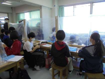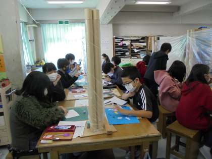 12月1日(火)の1・2時間目、6年1組は図画工作の時間でした。前回までの作品の仕上げと作品紹介を書きました。その後、カード作りに取り掛かりました。6年生のカード作りにおけるめあては、色は使わずに表現することです。
