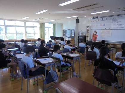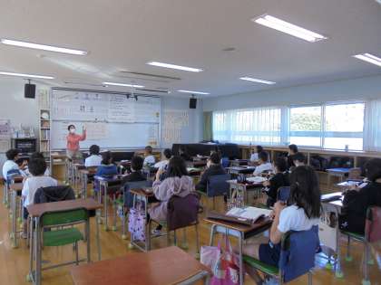 12月1日(火)の2時間目、4年2組は音楽の時間でした。今月の歌を歌ってから、リコーダーの練習をしました。取り組んでいるのは、「陽気な船長」という曲です。「ドソドソシソソ」と指の動きが大きくなりますが、ゆっくり練習をすることで、正しい音が出せるようになってきました。曲の最後までみんなで演奏することができました。