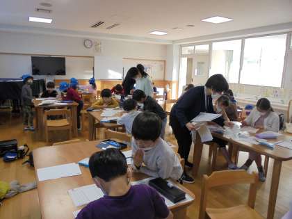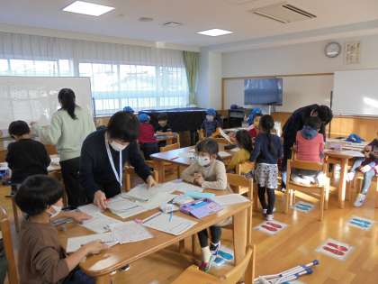 12月1日(火)の6時間目、1年生の希望者による放課後学習がありました。今回で10回目となりました。ランチルームでの学習には、担任の先生も加わって丸付けをしています。6時間目でも頑張る1年生です。