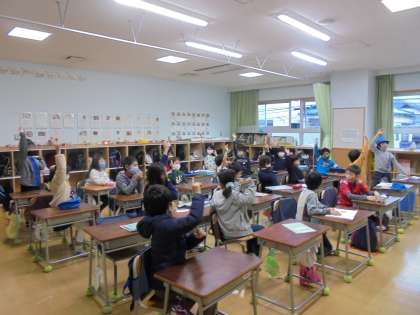 3日(木)の朝、放送による児童集会をしました。今回は、保健・給食委員による健康クイズでした。各教室では、子どもたちが「1だよ。」「2だと思う。」と話しながら正解を待ちました。正解が聞こえると「イエーイ」と喜んでいました。