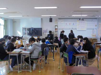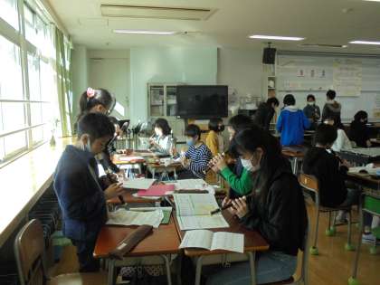 4日(金)の1時間目、6年1組は音楽の時間でした。今月の歌を歌ってから、リコーダーの練習をしました。曲目は、うさぎ追いしで始まる「ふるさと」です。グループを作り、互いの音を聞き合っていました。