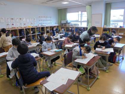 4日(金)の1時間目、2年2組は国語の時間でした。説明文「馬のおもちゃのつくりかた」の学習を生かして、「さつまいもレシピ」の説明文を書いています。生活科の時間に育ててきたさつまいもを自宅に持ち帰り、お家の方の協力もいただきながら、「スイートポテト」や「さつまいもパイ」「さつまいものみそ汁」などを作りました。経験していることなので、順序立てて文章を書くことができています。完成が楽しみです。