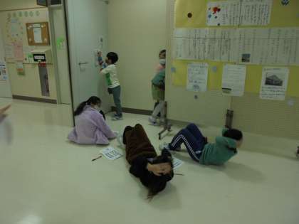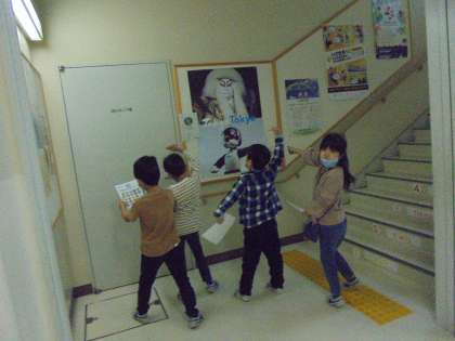 5日(土)の中休みの様子です。雨の降る寒い一日でしたが、子どもたちは雨の日だからできる「中里ビンゴ」に挑戦していました。低学年の子どもたちを中心に、ビンゴカードを持って、各階を回り、そこでのミッションに取り組んでいました。