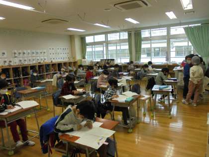 5日(土)の4時間目、2年1組は国語の時間でした。「さつまいもレシピ」の説明文を書いています。下書きをしてから清書に向かう段階でした。「おいしいさつまいもきんぴら」「9分で作れるおいしいやきいも」「あぶってかんたんスイートポテト」など、子どもたちの考えた題名に心惹かれました。