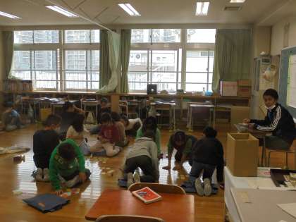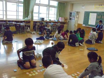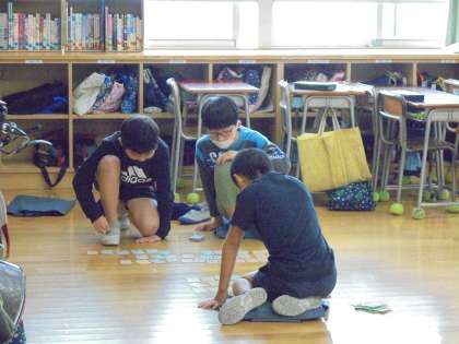5日(土)の4時間目、4年1組は教科「日本語」の時間でした。百人一首をしていました。読み手は担任の先生です。札を取るたびに歓声が上がりました。