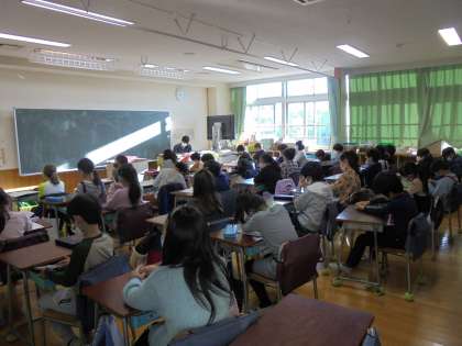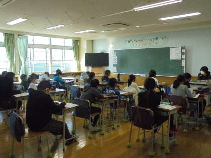 放送朝会での校長先生の話は、「自主性」がテーマでした。昇降口で毎朝、あいさつをしているうちに、相手の顔や目を見られるようになってきたり、「おはようございます。」とあいさつを返せるようになったりしている子が増えてきたことを褒めていただきました。写真は上から、3年1組、4年2組、5年1組の様子です。