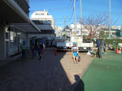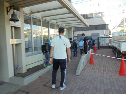 7日(月)は、全学年5時間授業でした。昇降口から出てきた子どもたちは、芝生で行われている作業に興味を示し、「何をやっているんですか。」と眺めている姿がありました。安全確保のために、コーンバーを立てたり、教員が子どもたちを誘導したりしました。