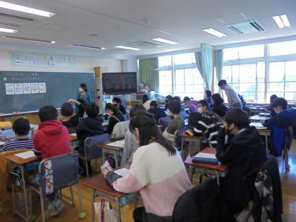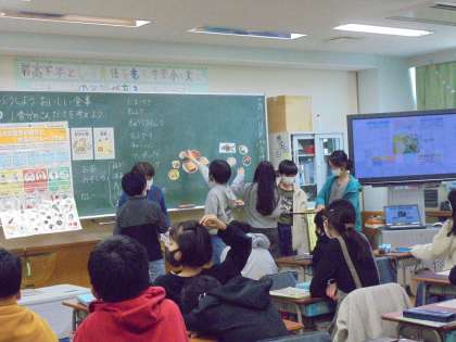 8日(火)の4時間目、6年1組は家庭科の時間でした。今回は、教室で「くふうしよう おいしい食事」の学習に取り組んでいました。この時間のめあては、「1食分の献立を考えよう」です。授業の後半、ゲストティーチャーとして栄養士の先生が参加しました。必要な栄養についての話がありましたが、「塩分は1日6g」と聞いて驚いていました。