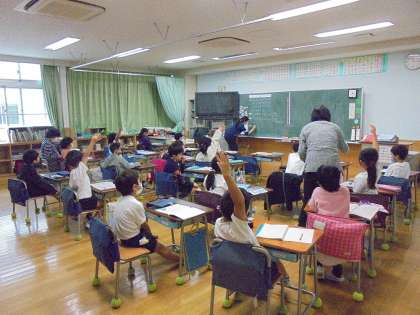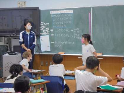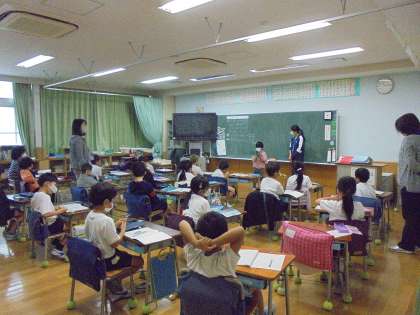 9日(水)の3時間目、1年1組は算数の時間でした。今回は、長さを比べる方法を考えました。紙テープを使う方法や、なわとびのなわを使う方法など、身の回りのもので基準になるものを考えることができました。