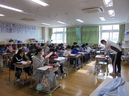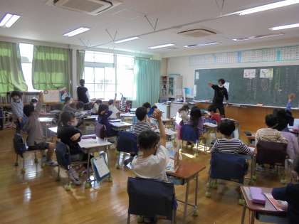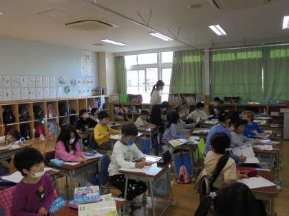 11日(金)、5時間目の各学級の様子を紹介します。1年1組は、生活科で取り組んだ「にこにこ大さくせん」をまとめていました。1年2組は、道徳の時間でした。子どもたちはすすんで自分の考えを発表していました。5年1組は国語の時間でした。説明文の一段落をみんなで音読してから始まりました。