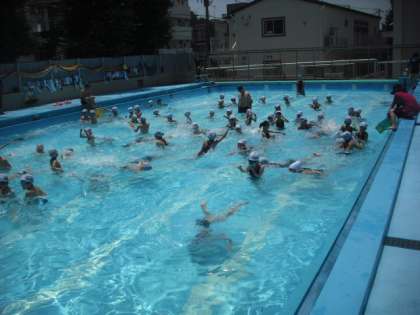 音楽朝会では、「地球星歌」を歌いました。高音部がきれいな曲ですが、とてもよく響いていました。3,4時間目は、1〜3年生の第1回目のプールでした。よい条件のもと、気持ちよく泳ぐことができました。