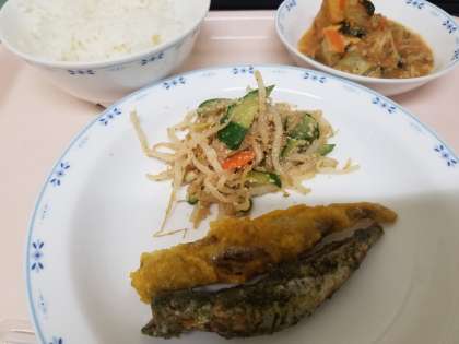 今日はししゃもをカレーと青のりの衣であげました。
