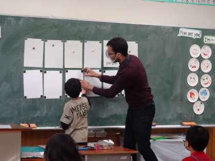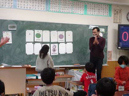 18日(金)の4時間目、1年2組は外国語活動の時間でした。「We wish you a Merry Christmas]の歌を映像を見ながら歌ったり、今大人気のアニメのキャラクターが登場する絵合わせを楽しんだりしました。