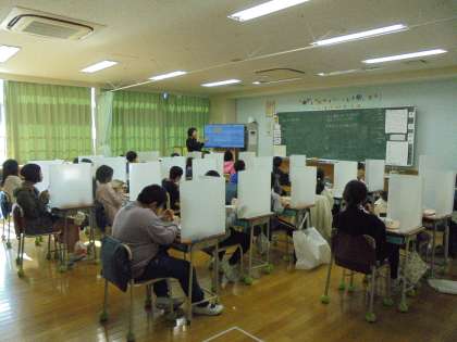 18日(金)の給食の様子です。クリームシチューの口当たりがとてもなめらかで、子どもたちもおかわりに来ていました。金曜日の給食が終わると、「今週も安全に給食ができてよかったです。」と栄養士、調理員ともども話をしています。