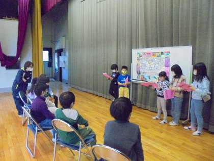 3年生はグループごとに工夫した発表を行いました。説明をしてからクイズを入れたり、質問を聞いたりする姿に上級生としての誇りがありました。