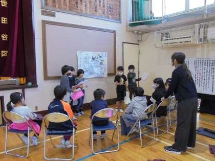 安全マップ発表会の最後は、3年生が2年生に対して「聞いてくれてありがとう。」というお礼の言葉を述べて終わりました。2年生にとっても1年生に発表することがあるので、今回の3年生の姿がとてもよい手本になりました。