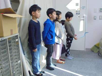 25日(金)午前8時25分から、テレビ放送による終業式を行いました。校長先生の話、児童代表の言葉と続きました。児童代表は、1年生と2年生の4名でした。カメラの前に立ち、しっかりと述べることができました。校歌を歌って式が終わりました。最後に、冬休みの生活について、生活指導担当の先生から話がありました。
