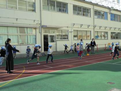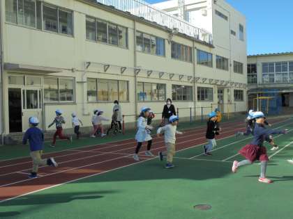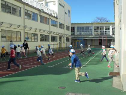 25日(金)の3時間目、1年1組は学級活動の時間でした。後半になってから、中校庭に移動して、子どもたちに人気の「ろくむし」遊びをしました。担任の先生がタイム制にしたことで、子どもたちはより機敏に動いていました。